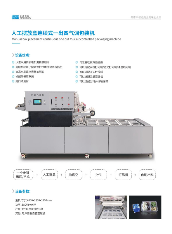 人工擺放盒連續式一出四氣調包裝機